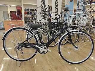 ブリジストンの通学車アルミフレームで軽い!リヤキャリア、両立スタンド、ソーラーテールランプ付き。